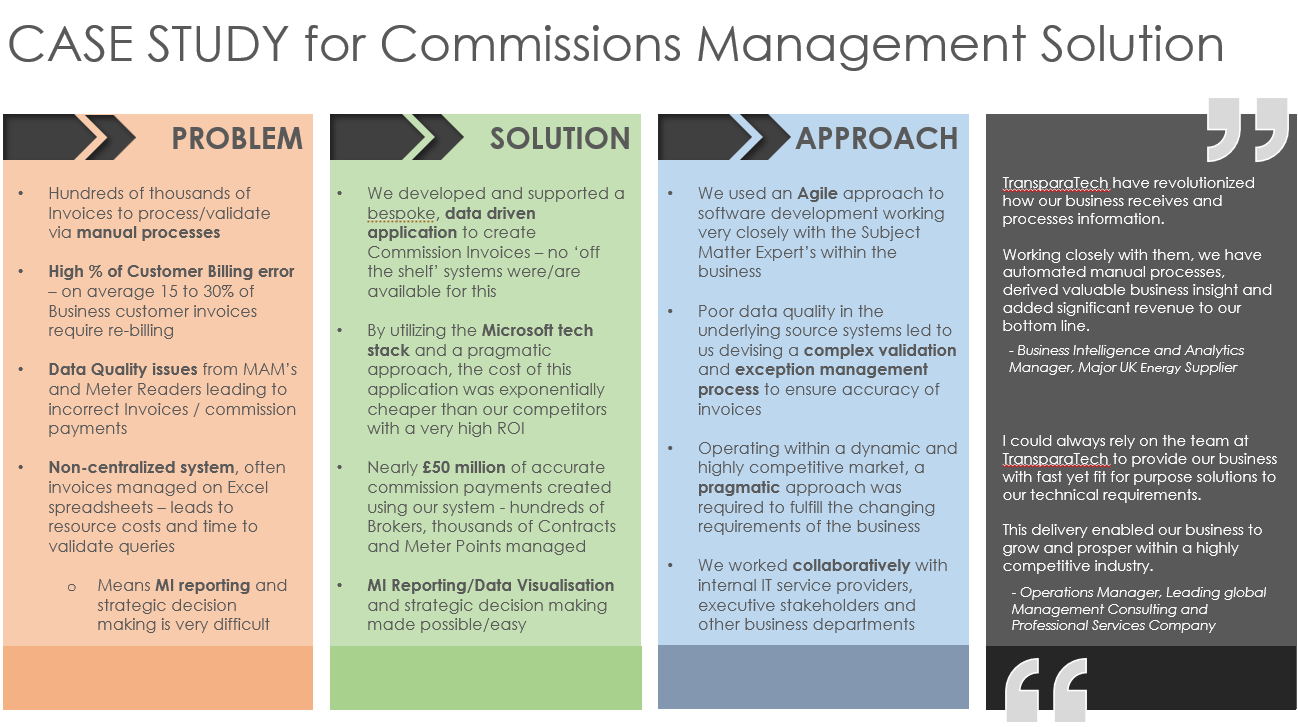 A Case Study of our Commissions Management Technical Solution for the Energy Industry.
